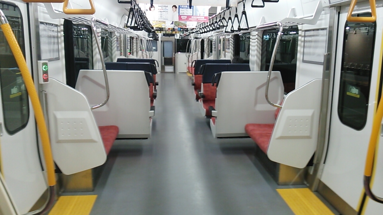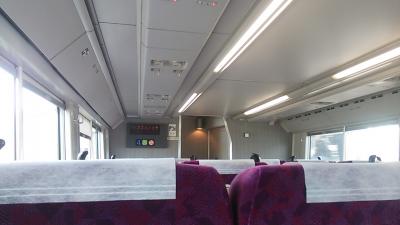 10両編成の特急車両が使用され、座席は全て指定席という内容ですが、17時30分頃までは2人ともに空いているという2人掛けの座席がいくつかありましたが、18時10分頃には窓側の席はほぼ埋まりました。