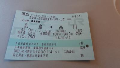 2023年4月9日に広島12時18分発のぞみ24号東京行きのグリーン車で広島から品川まで移動しました。