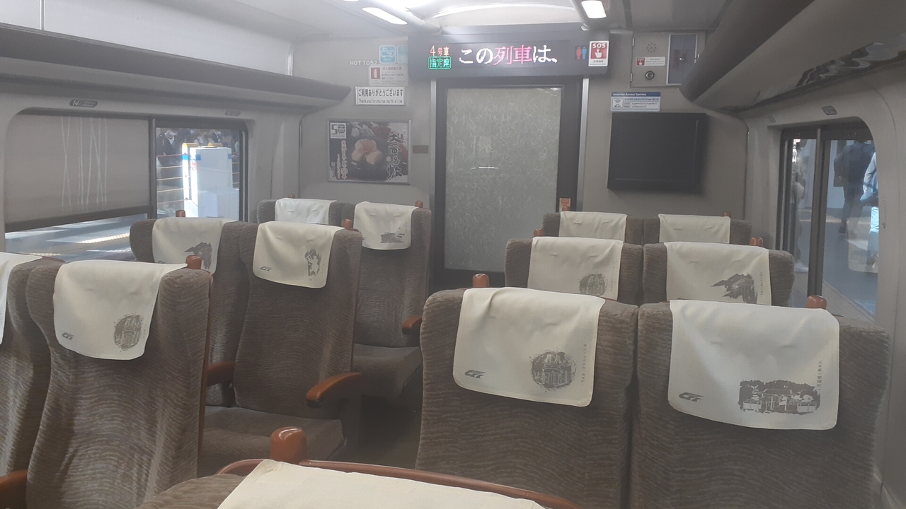 座席は全て指定席で、そのうち1号車の一部のみグリーン車で、以外は普通車指定席でした。