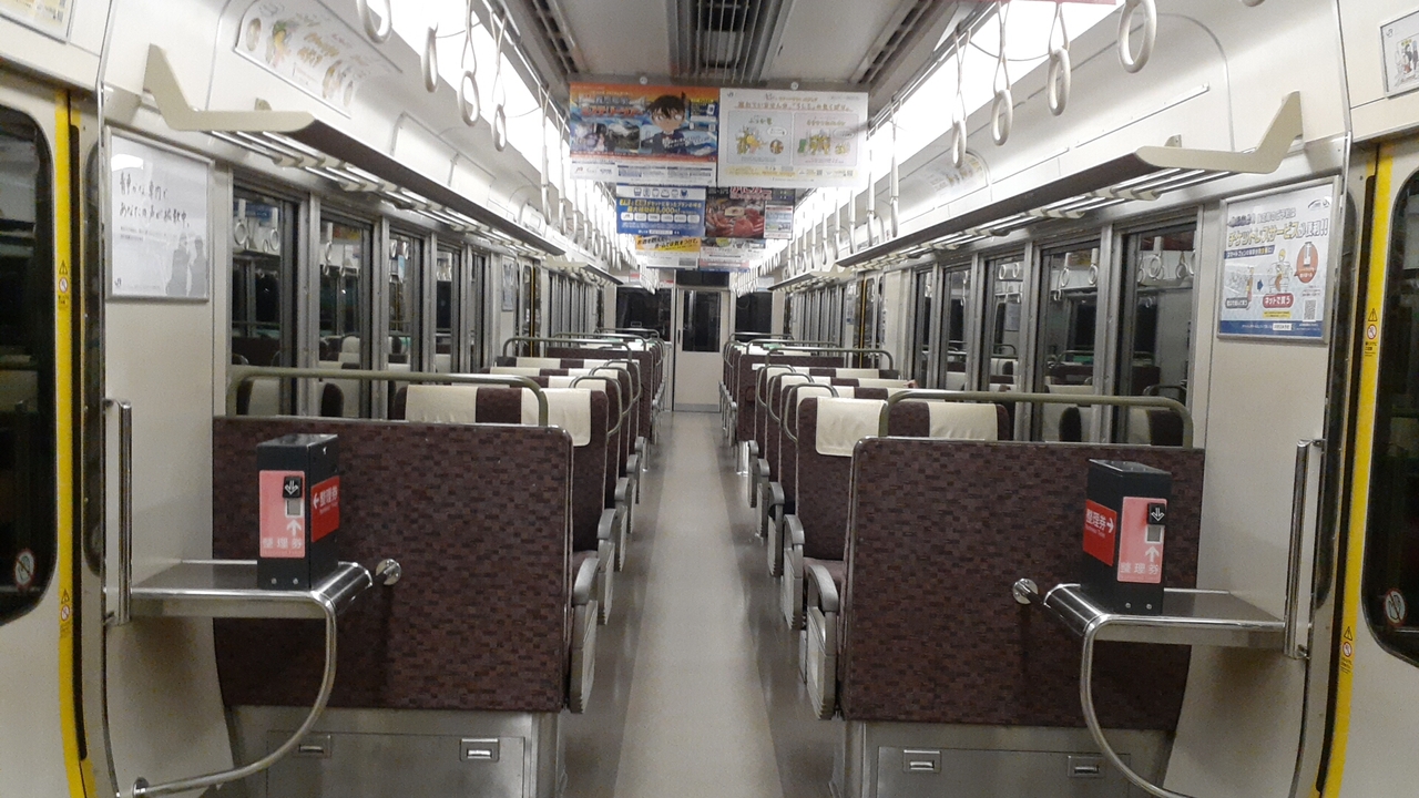2両編成の低床式車両が使用され、座席は基本的にボックスシート、一部はロングシートでした。ただボックスシート自体、首都圏や東北のものとは異なり、適度なクッションがある為、乗り心地はまずまず快適でした。