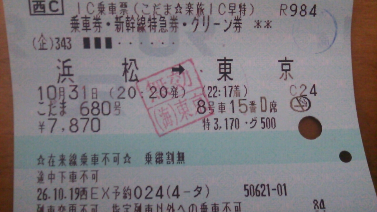 ちなみにこの「こだま☆楽旅IC早特」、長距離を利用する程お値打ちとなり、東京~名古屋間では普通車指定席の正規料金より1980円安い8900円、静岡~新大阪間も普通車指定席の正規料金より1930円安い8950円、東京~新大阪間に至っては普通車指定席の正規料金より4640円も安い9500円で「こだま」のグリーン車を利用する事ができるみたいです。