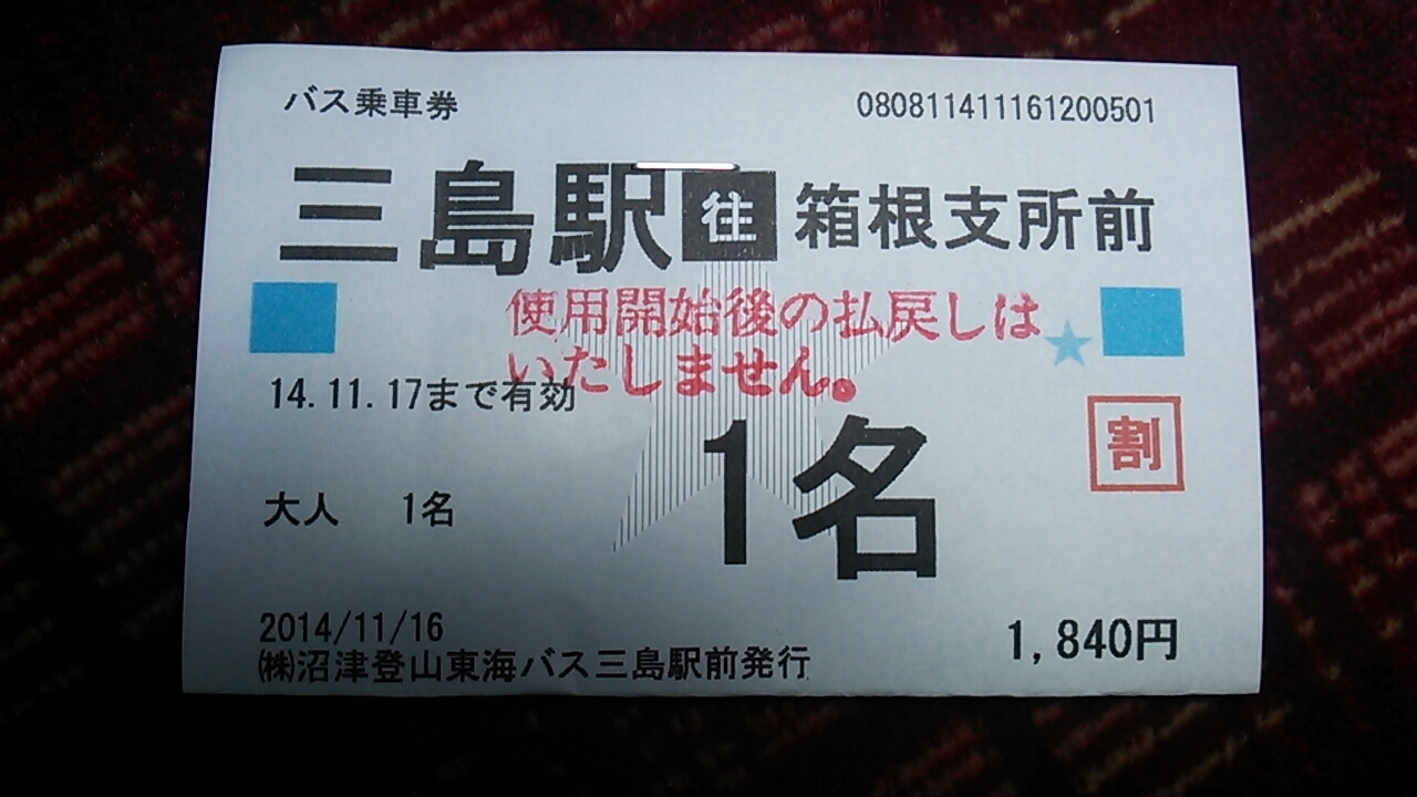 なお三島駅~箱根関所停留所や恩賜公園前停留所間を往復利用する場合、三島駅前にある案内所で往復割引切符が発売されていますので、こちらを利用されることをお奨めします。(通常往復運賃の1割引の値段で買えるそうです。)- 旅行時期
