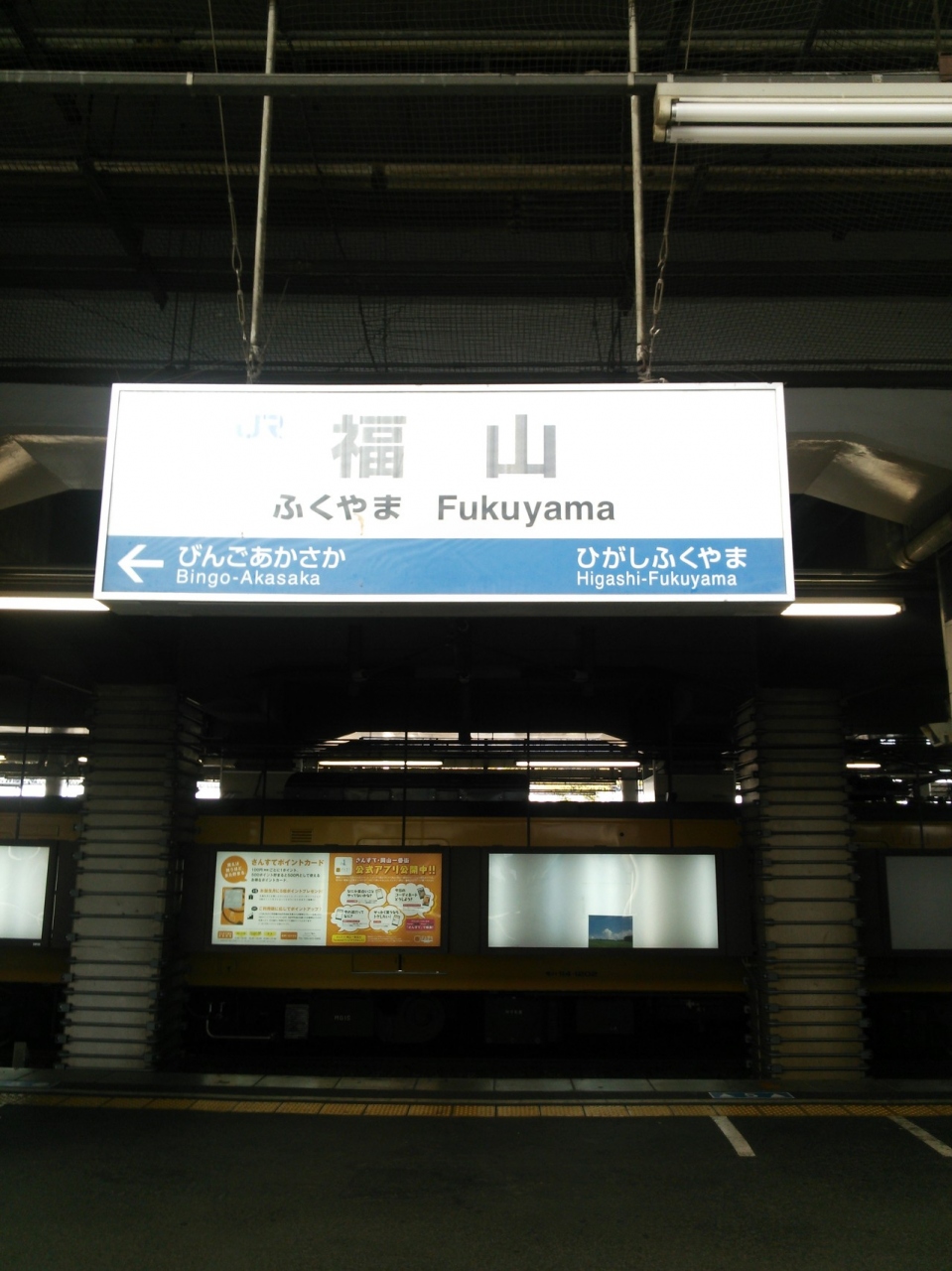 なおこの福山駅、山陽本線・福塩線の列車がホームに到着する際、音楽が流れるのですが、その流れる音楽は季節により異なり、春は「百万本の薔薇」、夏は「海」、秋は「もみじ」(冬の曲名は分かりません。すみません。)の音楽が流れます。