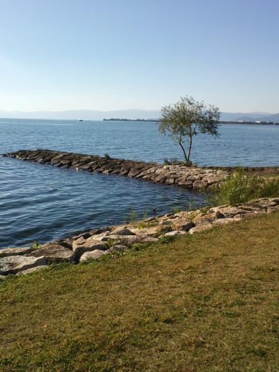 自由広場やテニスコートの他、長浜城(歴史博物館)といった観光客向けの施設もあります。また琵琶湖の湖畔にも面し、湖畔沿いにある道路をブラブラと歩きながら琵琶湖の景色を眺めたのですが、天気が良かったこともあり、景色がとても綺麗でした。