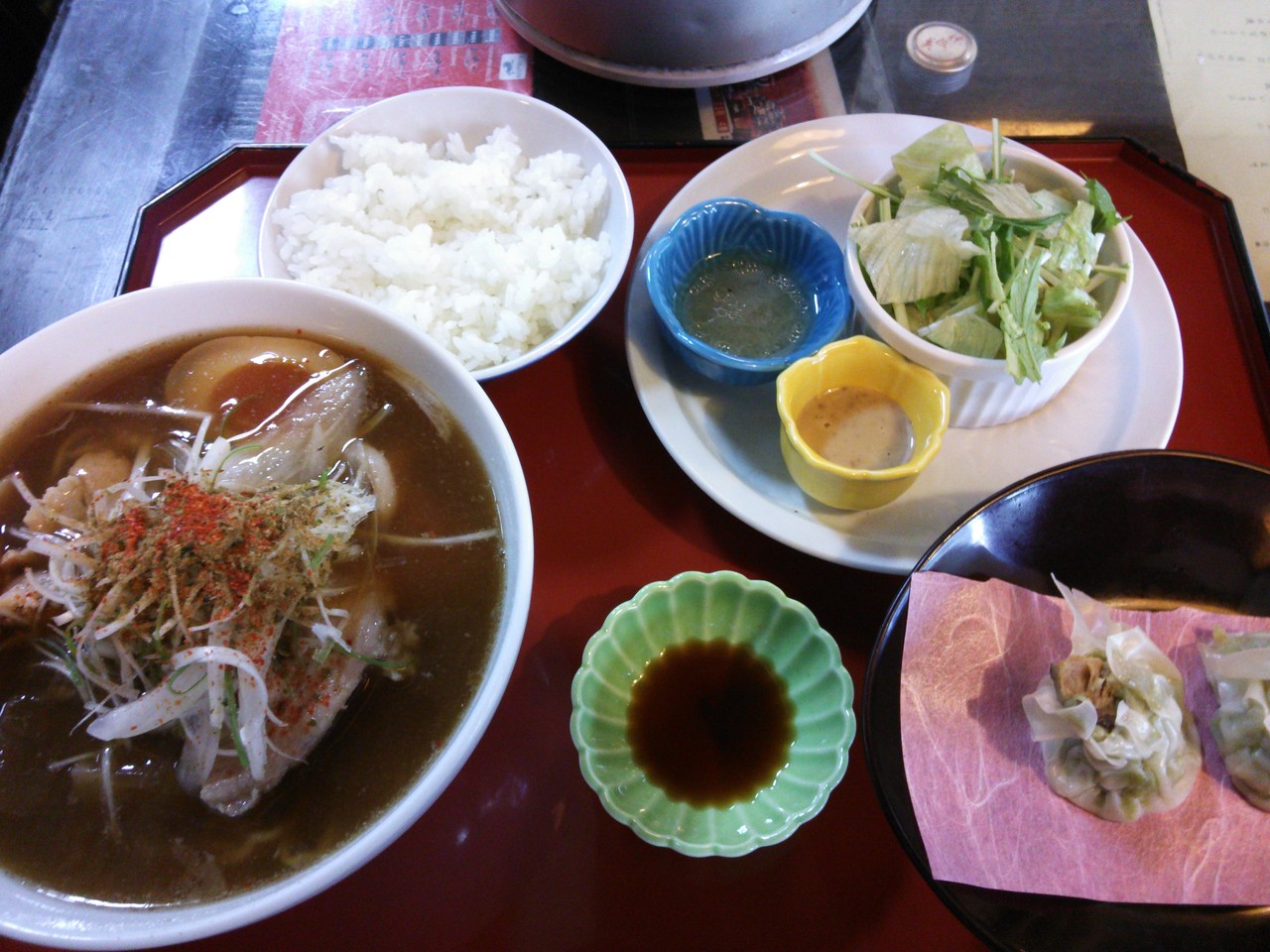 当日頂いたのは「川根大根らーめんセット」というセットメニューで、このお店のオリジナル料理である川根大根らーめんと川根茶シュウマイの二品の他に、豆腐サラダ、ライス、コーヒーが付いてきました。