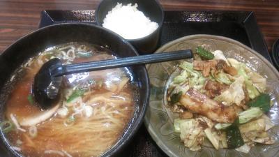 このお店、浜松餃子のメニューもあり、それ自体も確かに有名ですが、一番お奨めなのは「サービスランチ」です。なせお奨めするかというと値段の割に内容が充実しているからで、値段は税抜590円税込637円するのですが、ご飯、ラーメンの他に一品料理がついてくるんです。しかもご飯はやや少な目の量ですが、ラーメンはきちんと一人前の量があり、さらに一品料理は通常の1皿料理として出される量と同じ位の量があり、税抜590円にしてはとてもボリューム感があります。