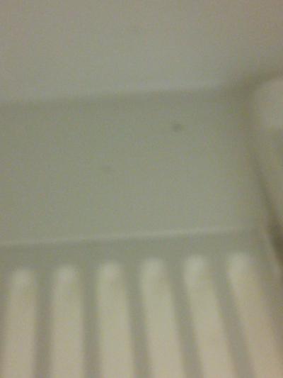 ところがです。ペットボトルの飲料を冷やそうと冷蔵庫のドアを開いたところ、ドリンク類を入れるところに色のついた液体がついていたんです。また場所は異なるけど、トイレの便器の奥には黄ばみも残っていました。