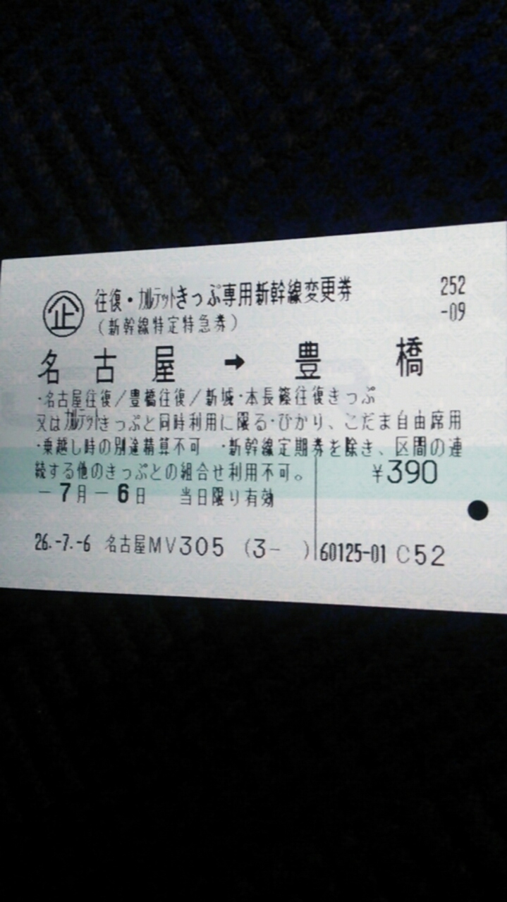 そのうち今回は2013年7月6日の日曜日、名古屋から愛知県の豊橋まで「こだま」で移動した時の話です。