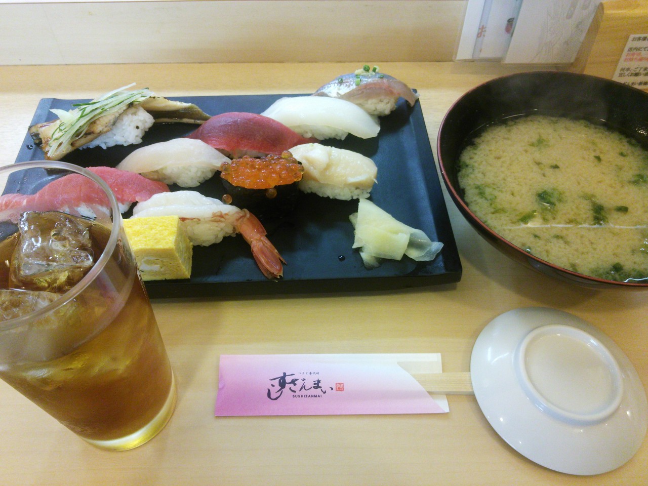 頂いたのは休日のランチタイム限定の商品である「ホリデーランチ 三陸」1500円で、中トロ・赤身をはじめ、鯵、海老、いくら等10種類のお寿司の他、椀物、ドリンクがついていました。そのうち中トロについてですが、丁度良い脂の感触が口の中に広がり、とても美味しかったです。