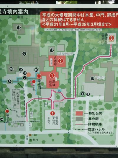 なおご本堂は改修工事の為、平成28年3月頃まで観覧が出来ず、代わりに大書院を仮本堂とし、改修工事期間中のみ観覧可能としているそうです。またその大書院では伊達政宗公の大位牌を間近で見る事が出来るようです。- 旅行時期