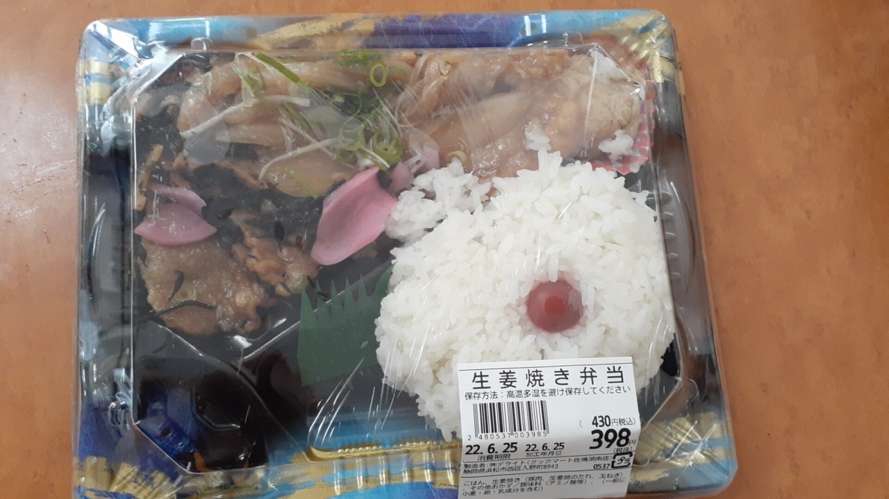 2022年6月18日の12時過ぎに訪れ、当日は本体価格398円の「しょうが焼き弁当」の他、ハムカツを購入しました。