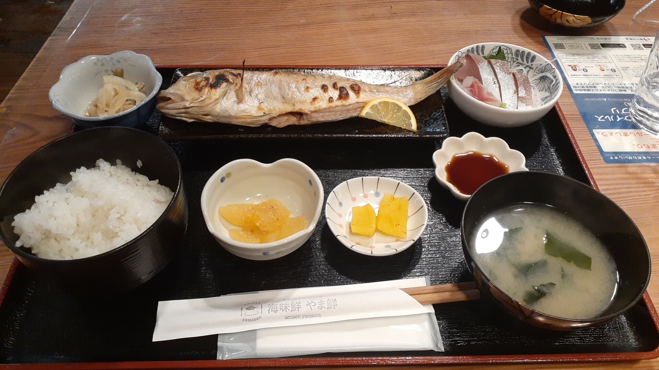 当日は1,500円する「選抜SKN定食」を頂きましたが、ご飯・味噌汁の他、焼魚・刺身2点盛り(はまち外)・小鉢2品(味付けかずのこ外1品)が付いてきて、焼魚の他、手軽にお造り等も楽しむことができ、良かったです。
