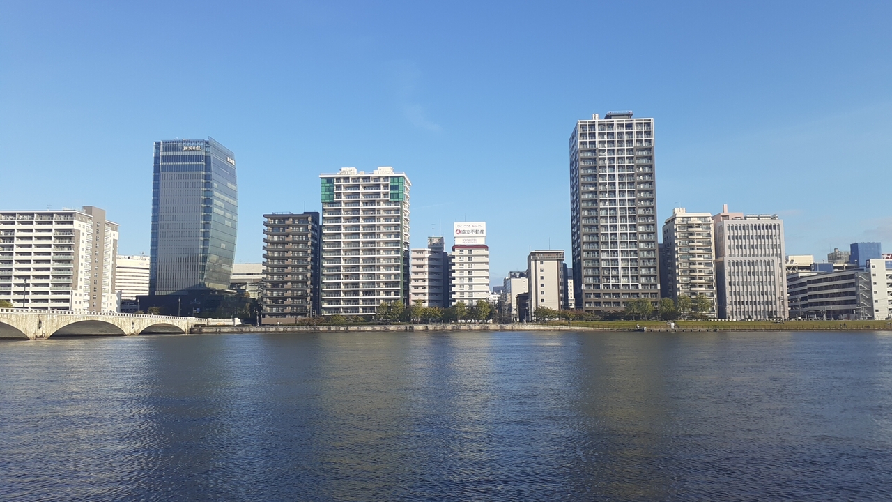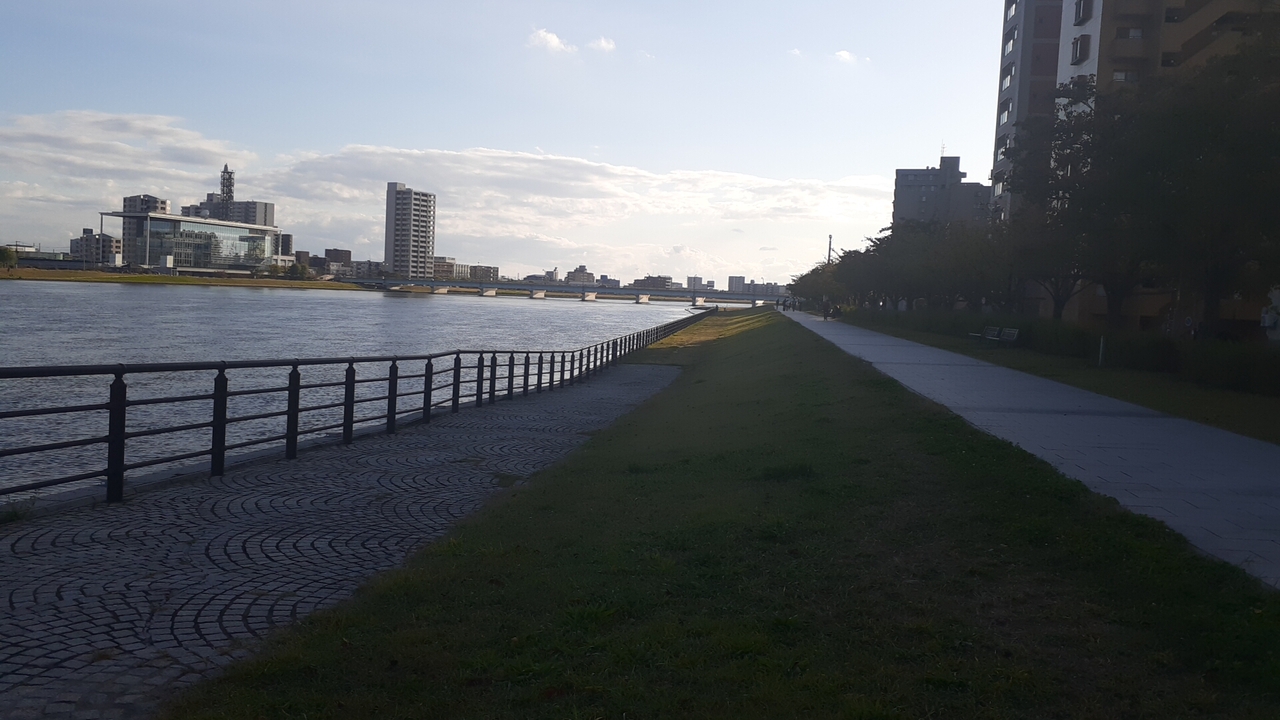 通り自体は大谿川という川に沿っているのですが、2022年4月10日現在、通り沿いに桜が咲いていて綺麗でした。