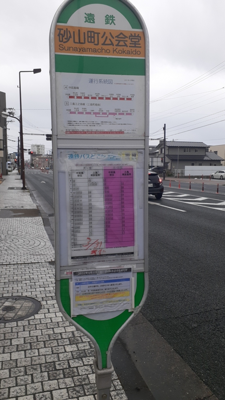 2022年4月1日付けでダイヤ変更が行われ、中田島砂丘方面行きの路線バスが減便となりました