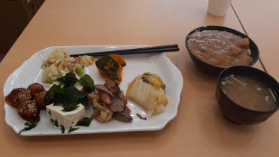 宿泊料金が高いせいか翌朝の朝食の品揃えは充実していて、カレーライス・ご飯・パンの他、肉団子・ポテトサラダ・玉子焼き・八宝菜・豆腐・キャベツと豚肉の和え物・かぼちゃの煮物等がありました。