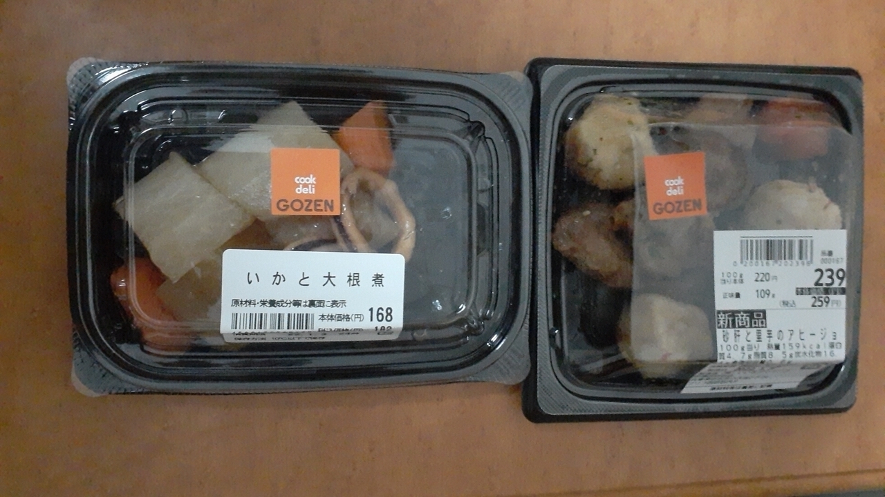 ちなみにこの日はいか大根煮・塩だれチキンステーキ・高菜でかまるおにぎり・砂肝と里芋のアヒージョの4点を購入しました。