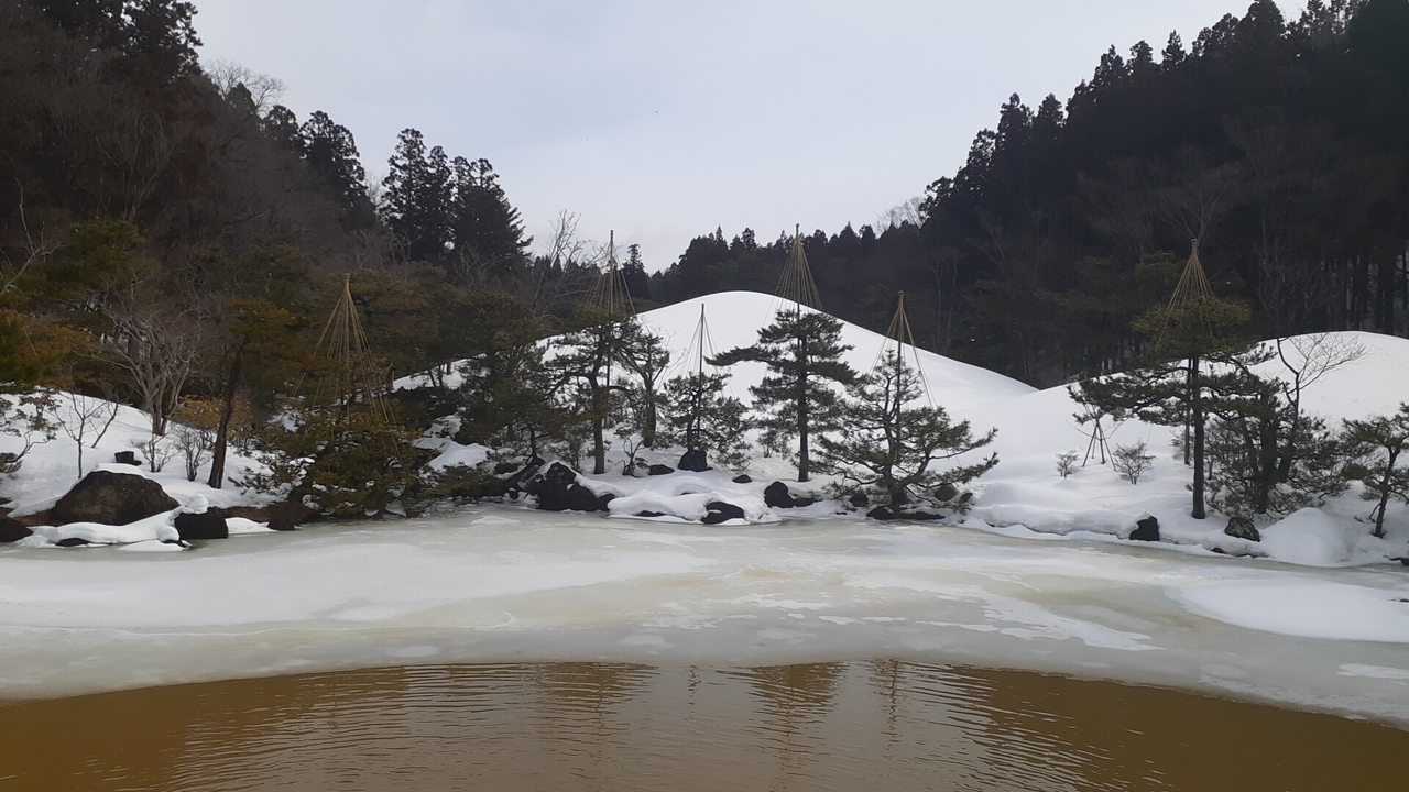 冬季の為、ほとんどのエリアで積雪があり、立入が困難な状況の中、この日は水心苑が2022年2月19日と2022年2月10日限定で特別公開されるとのことで見てきました。