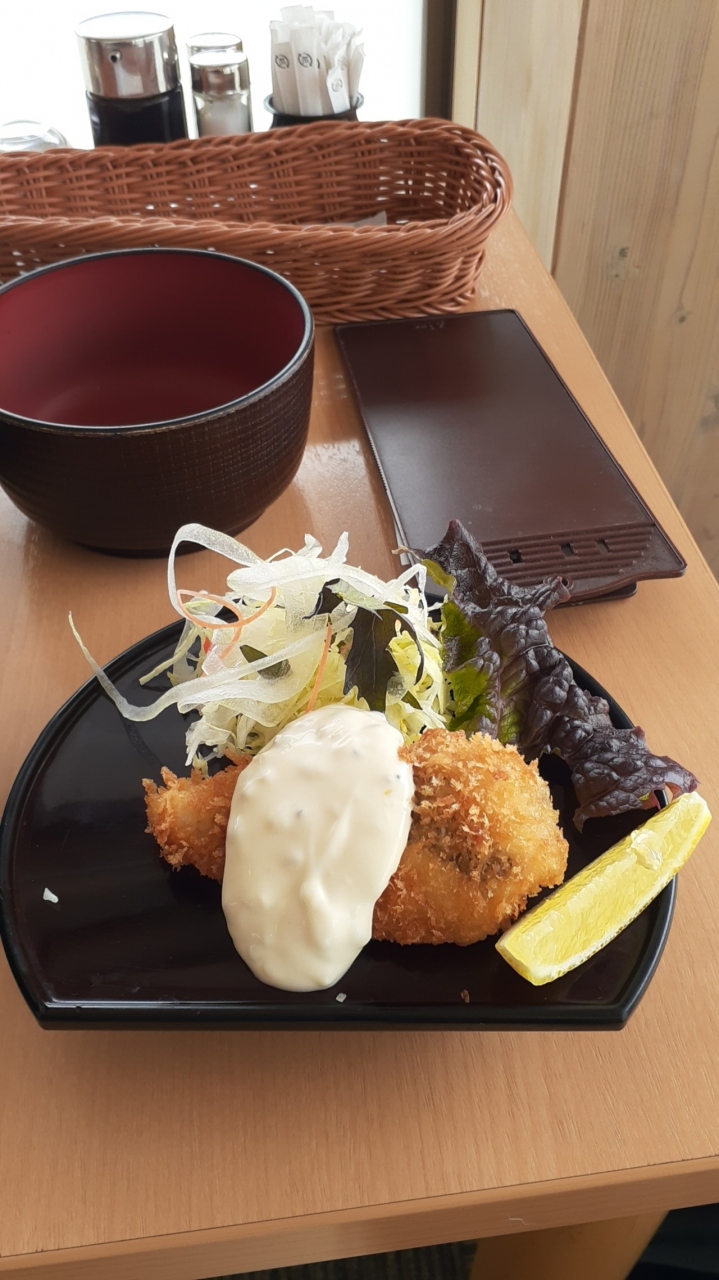 こちらのレストラン、ハンバーグ・とんかつ等の定食類、ラーメン・ナポリタン等の麺類・カレー等ごくお馴染みのメニューもありますが、この日の場合、鱈福ランチというメニューかあり、こちらを頂きました。