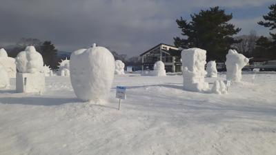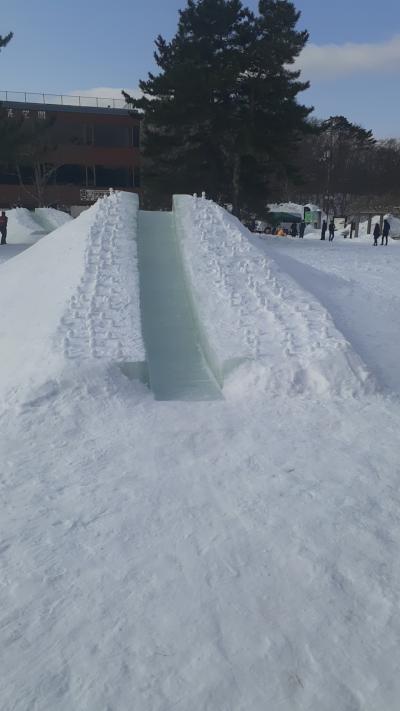 2022年2月12日の土曜日に大沼散策に訪れた際、イベントの様子を目にし、はじめてイベントのことを知ったのですが、様々な雪像の他、滑り台がありました。