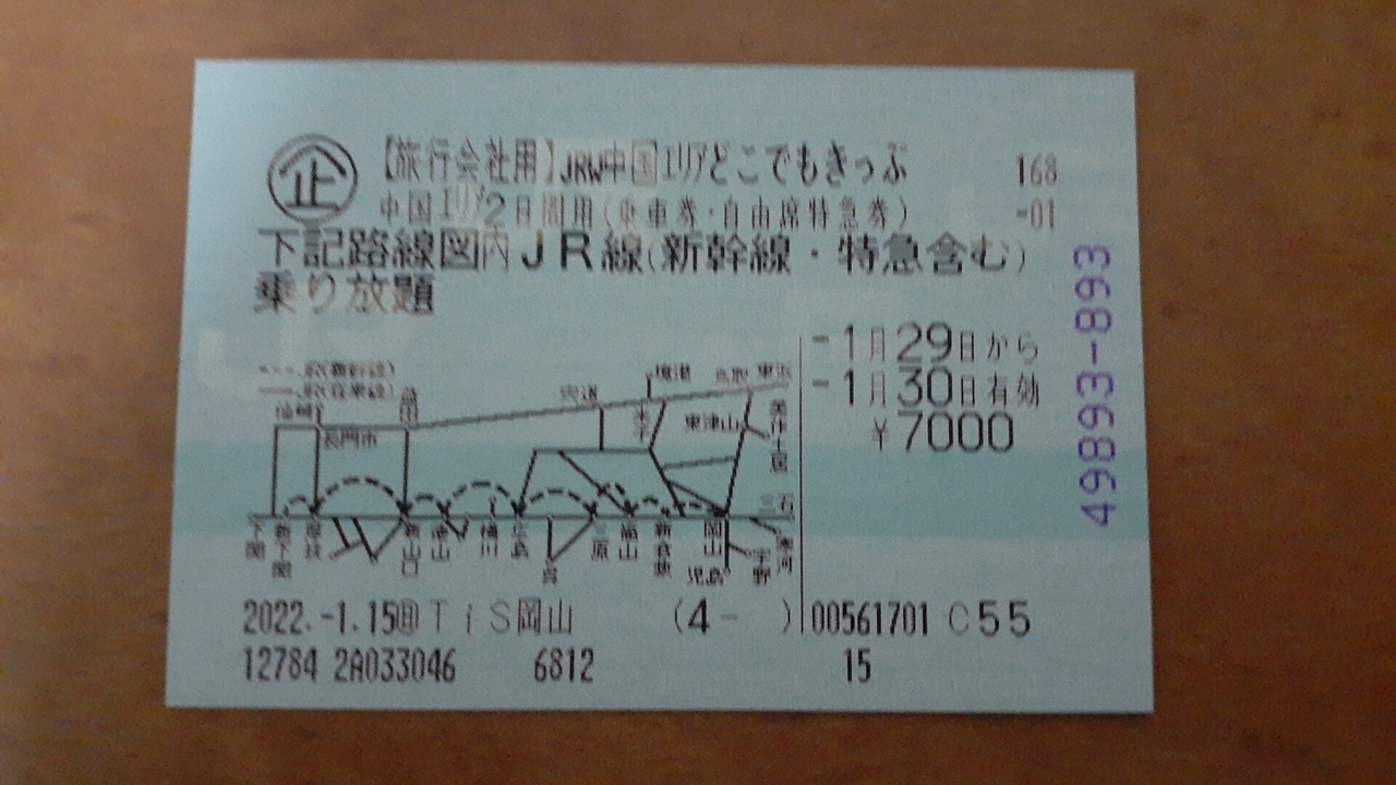残念ながら、2021年12月末で「JR西日本どこでもきっぷ」の取扱いは終了しましたが、2022年1月現在、利用可能エリアを絞った「中国どこでもきっぷ」という割引切符が発売されるようになりました。