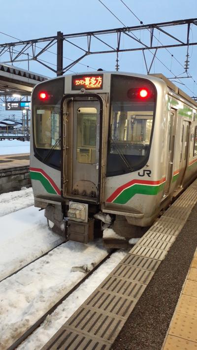 そんな中、会津若松17時23分発普通列車喜多方行きは2022年1月23日現在、会津若松~喜多方間を電車で運転する数少ない(1日4本)列車の1つです。