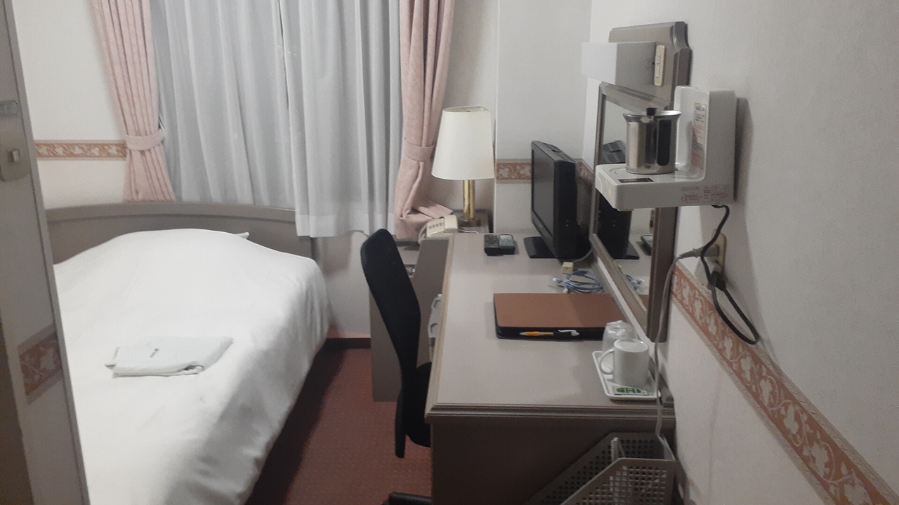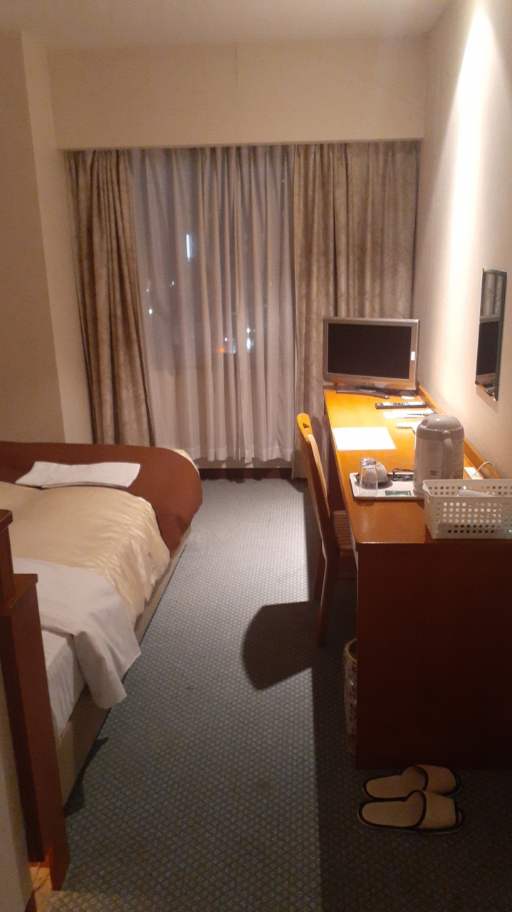 部屋ですが、白を基調とした内装で、広さは普通でした。ベッドはさすがにシングルサイズでした。