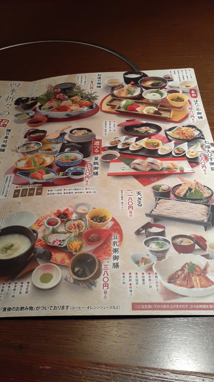 通常は多数のメニューの取扱いがありますが、この日はお正月期間ということで、2,980円する潮騒御膳、1,780円する選べる釜飯御膳等3種類のメニューのみの取扱いとのことでした。
