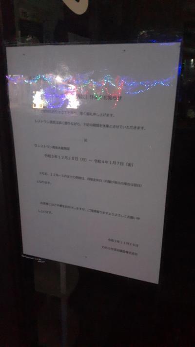 2021年12月20日から2022年1月7日までの間は終日営業を休止するそうです