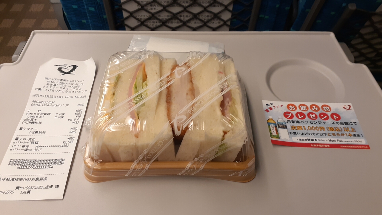 当日はサンドウィッチを購入しましたが、次回1,000円以上の利用で500ミリリットル入りのペットボトルの緑茶又はミネラルウォーターが貰えるクーポン券を頂くことができ、ラッキーでした。- 旅行時期