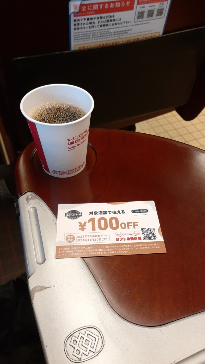 2021年11月5日現在、列車によってはコーヒーの無料配布を実施していました