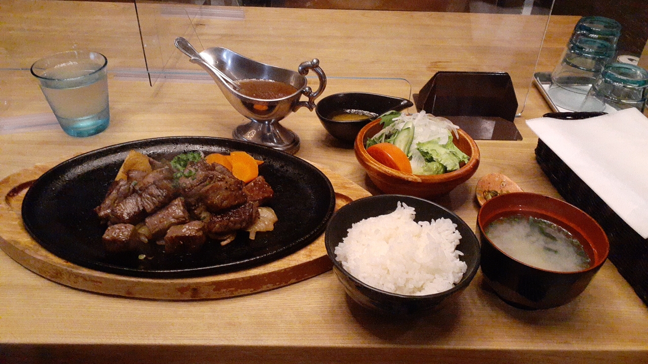 2021年11月5日のランチに利用し、当日は「鹿児島黒牛ひとくちステーキセット」の250gを頂きました。