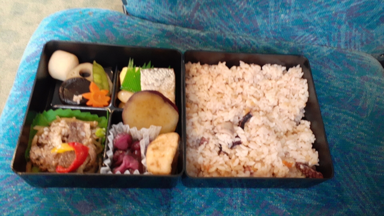 「たこめし二段重」というお弁当を購入しましたが、たこめしの他、焼き魚(鮭)・すき焼き・卵焼き・煮物(里芋・人参・蓮根等)等が入っていました。