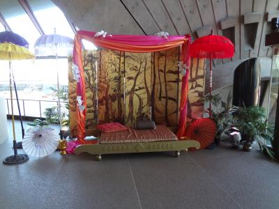見学ツアー日が「王様と私」のオープニングナイトだった事もあり、舞台で使われているような椅子やテーブルがセットされていました。