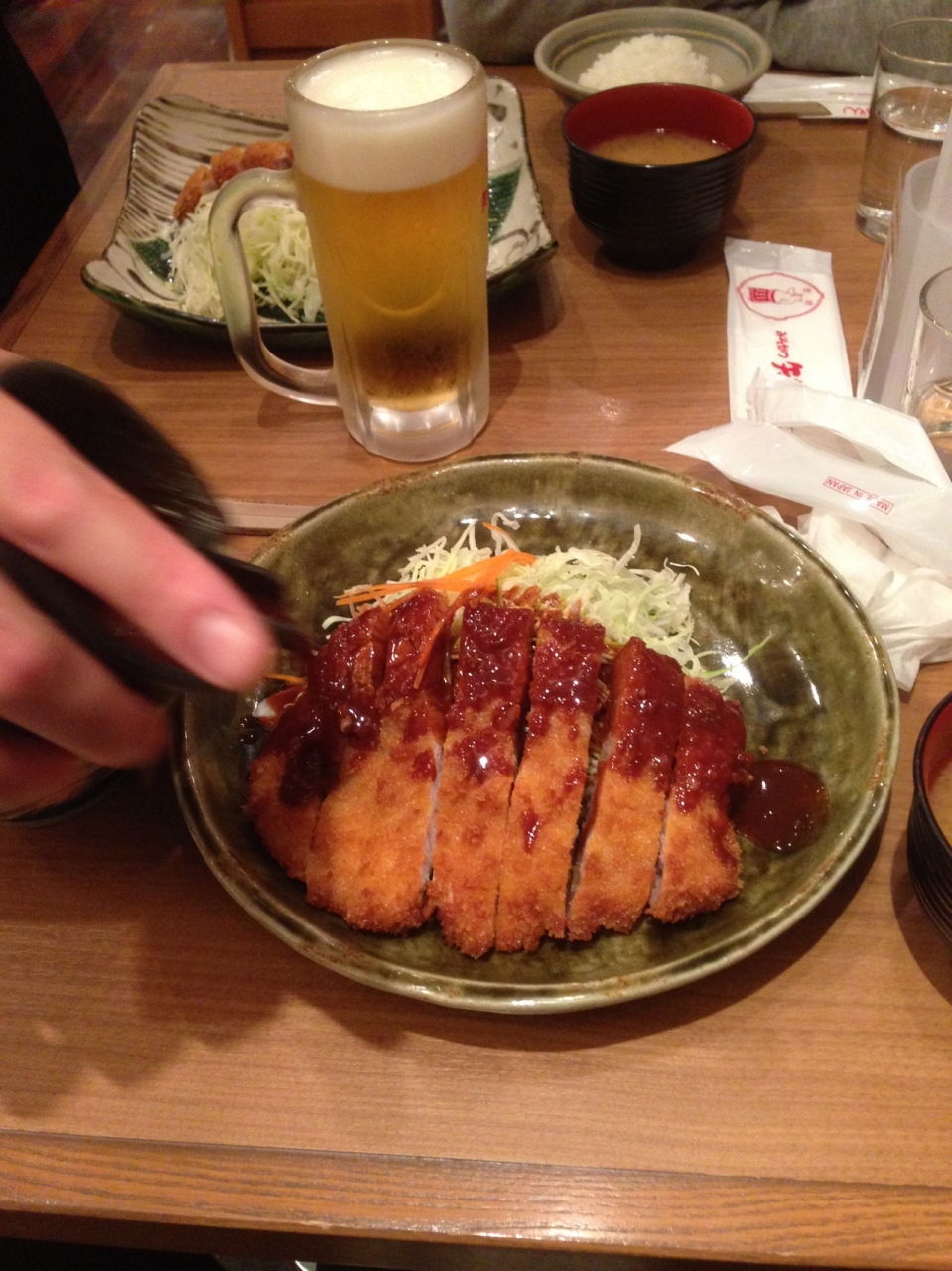 ラシックの7階にあります。夜の11時まで開店していますので食べるところに困ったらここ。ロースカツ定食を注文します。店員さんが目の前で味噌をかけてくれます。ソースは名古屋でどは邪道のようです。味噌の味が自然に溶け込んでいるので、味噌が苦手な人でも食べやすいです。