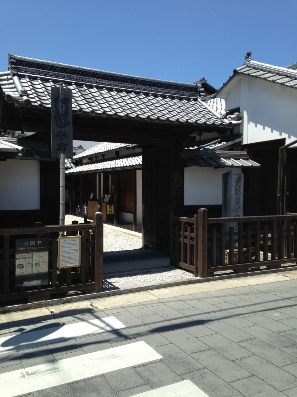 最寄り駅は京阪電車の神宮丸太町駅です。歩いて10分くらいはありますが、平安神宮の手前の北西角にあります。八ツ橋発祥の地でも有名なようで、創設者の銅像が安置されています。平安神宮参拝の途中に立ち寄っていただきたい場所です。