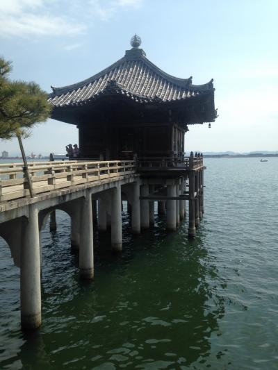 大津に来たらここが有名です。湖に浮かぶ島のようですが、入場料がかかります。値段の割には見所がほぼこれだけなのが少し残念です。浮御堂の内部は無数の金の仏さまがおられます。御住職らしき方がベビーカー持参の主婦に「あんた‼?ここにそんなもの持って来るな‼?」と窘められていたので、厳格さと崇高さを感じました。