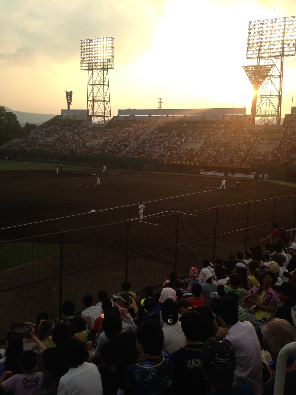 最寄り駅は西京極駅です。駅から歩いて行けます。京都サンガのホームでもありますが、年に数回プロ野球の試合があります。ことしはオリックス対日本ハムでしたが入場料金が高めです。内野指定席が3500円もしました。京セラドームならもっと安くデラックスな席なのに。。
