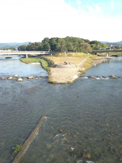 お題のとおり、賀茂川の絶景は何と言っても出町柳からの風景だと思います。中洲があってそれぞれに橋がかかっています。写真の風景は賀茂大橋からのものです。濁りがない位透き通った感じとまではいきませんが大河に佇む人達の姿を見てると落ち着きます
