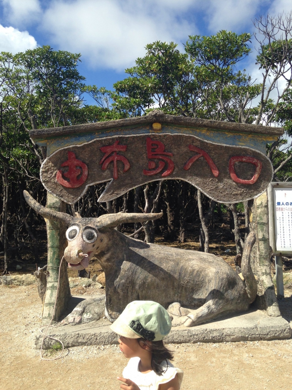 西表島から水牛車にゆられて約10分。半日もあれば見て回れます。レストランや売店もあり、お土産には心配