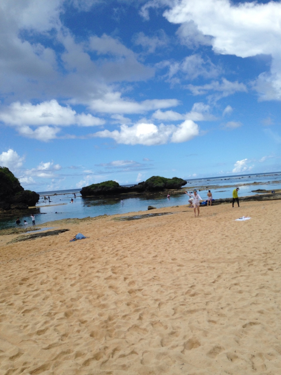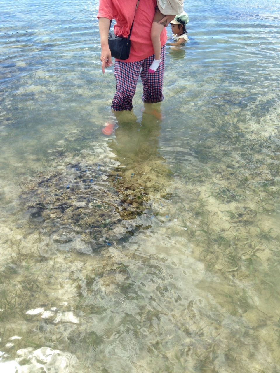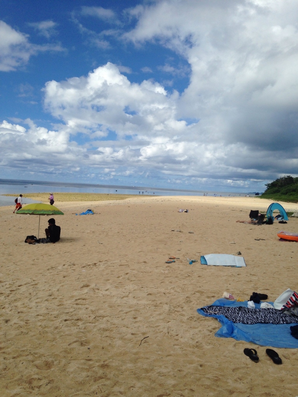 西表島へは石垣島より高速フェリーで30分程度です。そこからこの砂浜まではレンタカーを使います。海水浴というよりこの砂浜はどちらかといえばシュノーケルとか洋服のまま入っている人が多いです。写真のとおり浅瀬に青い熱帯魚がいます。