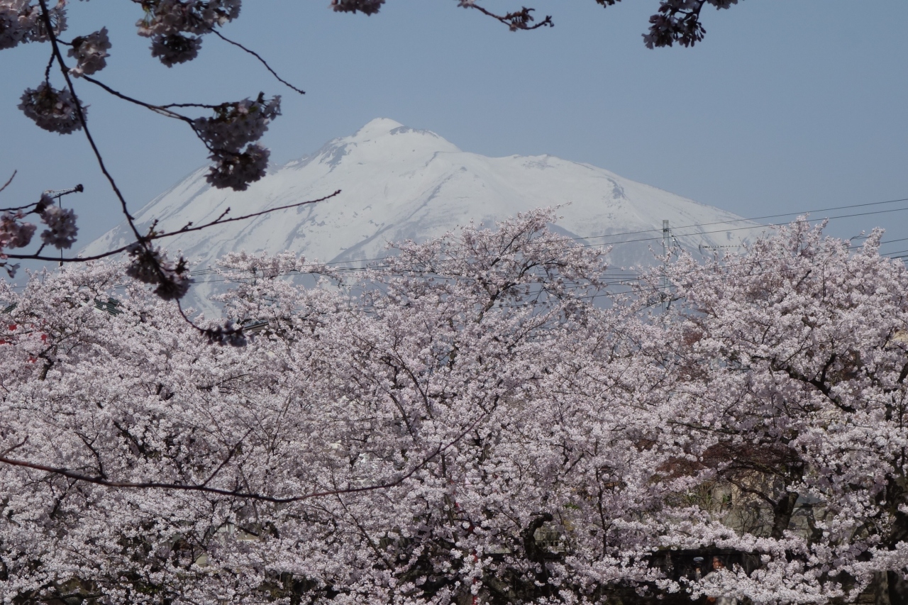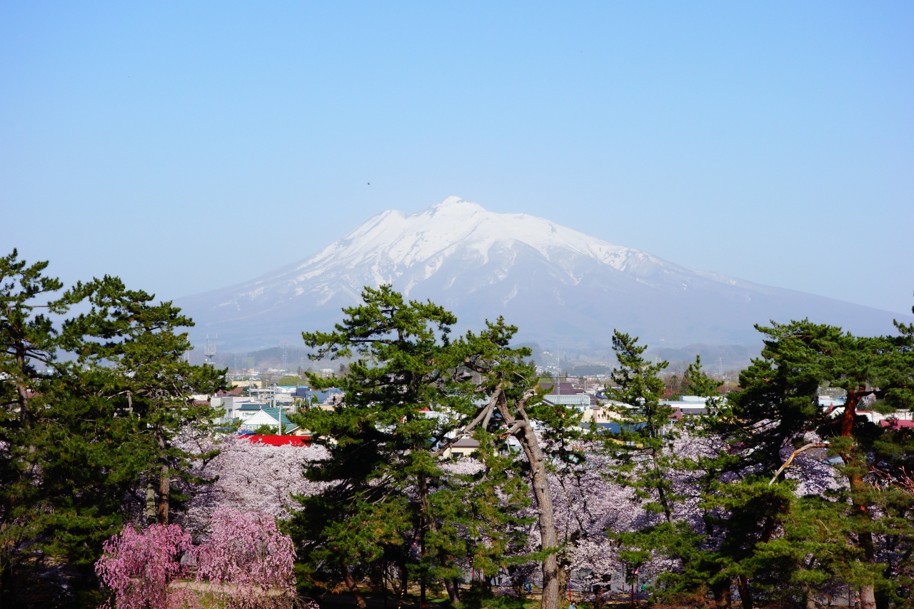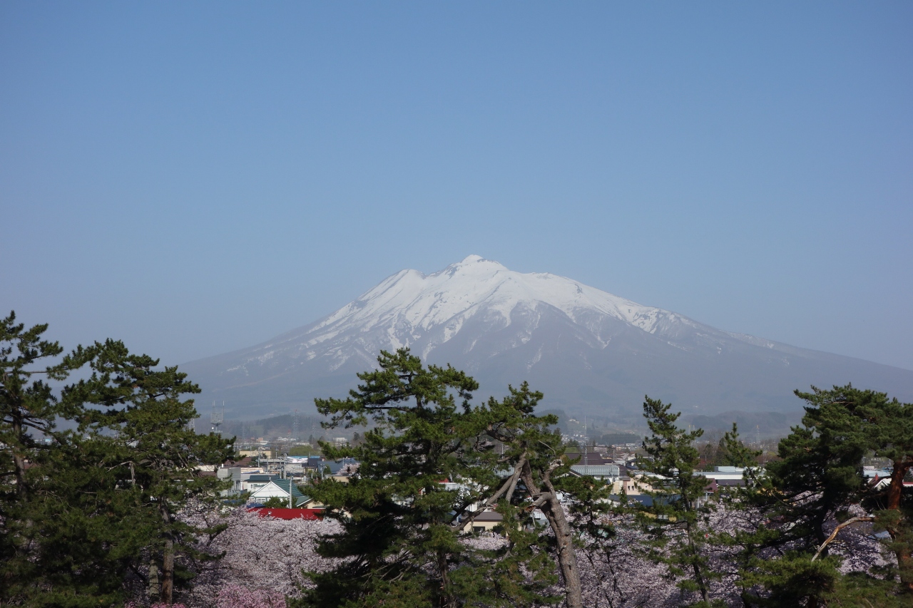 弘前城の天守からよく見える、美しい山です。奥羽本線や五能線乗っているときも車窓から見えました。