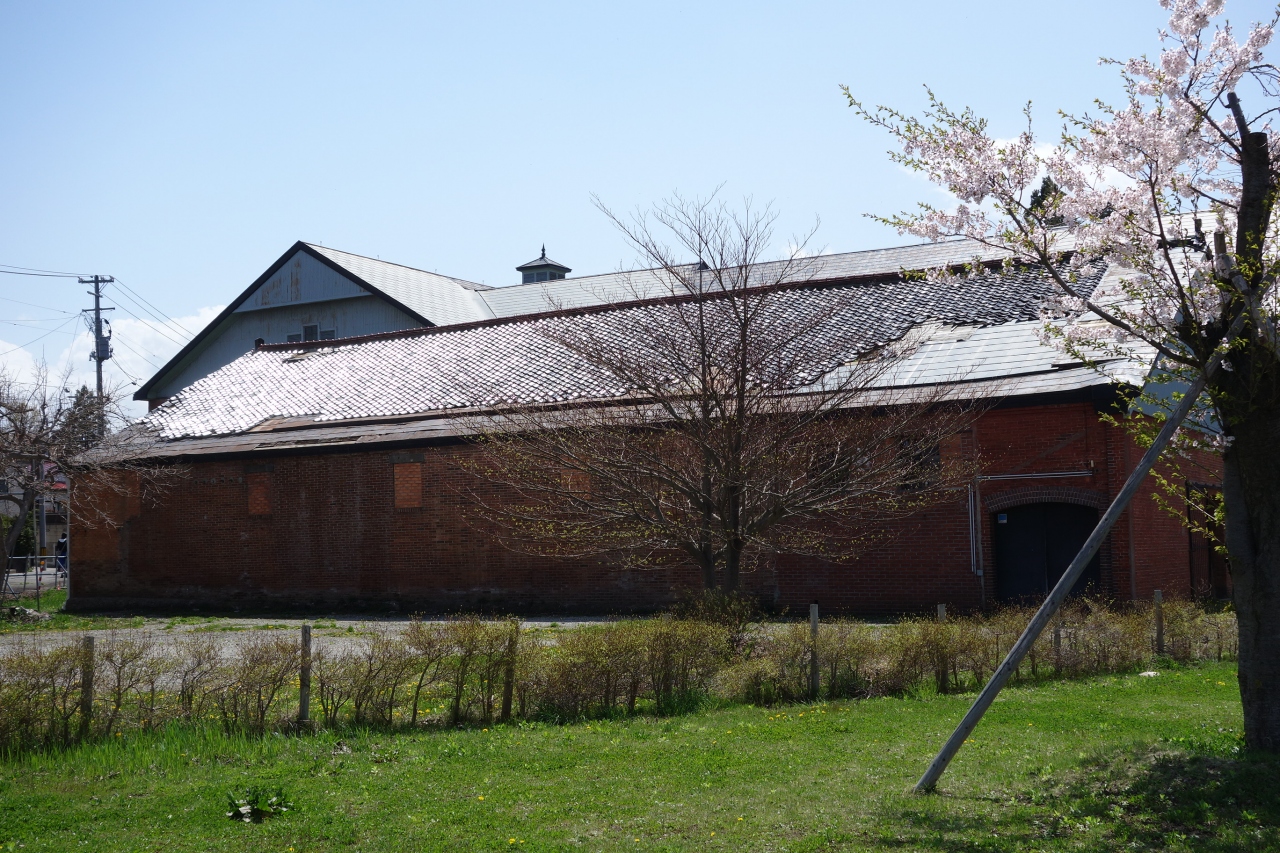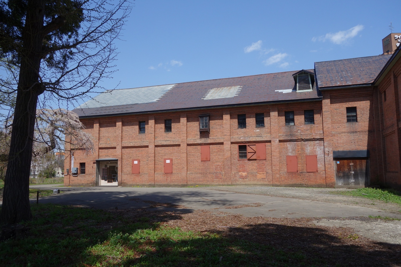 弘前の商店街「土手町」から、ローカル線の弘南鉄道・中央弘前方面に向かい、そのまま道なりに直進するとレンガ倉庫があってその一角に展示されてます。