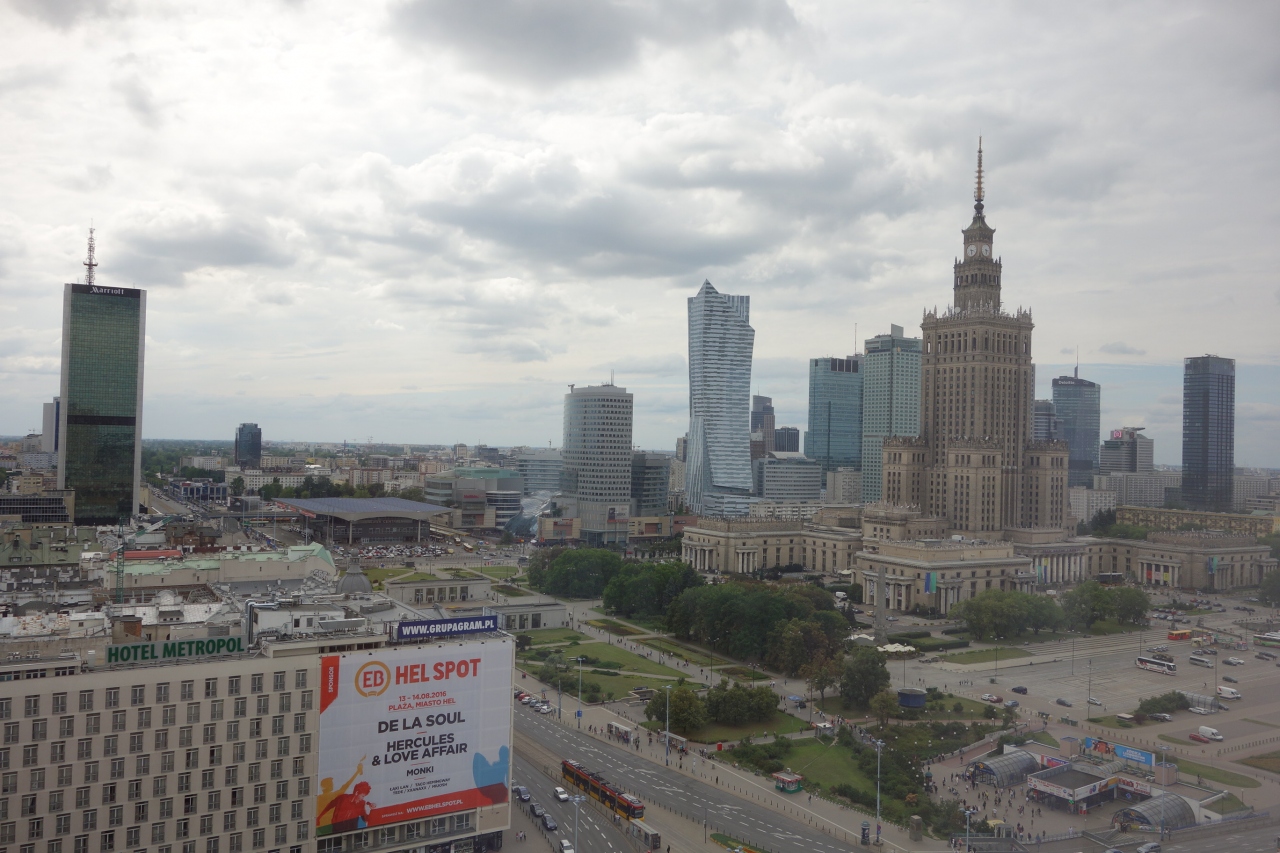 ワルシャワ中央駅まで徒歩10分位、旧市街まで徒歩20分。無難な高層ホテルです。