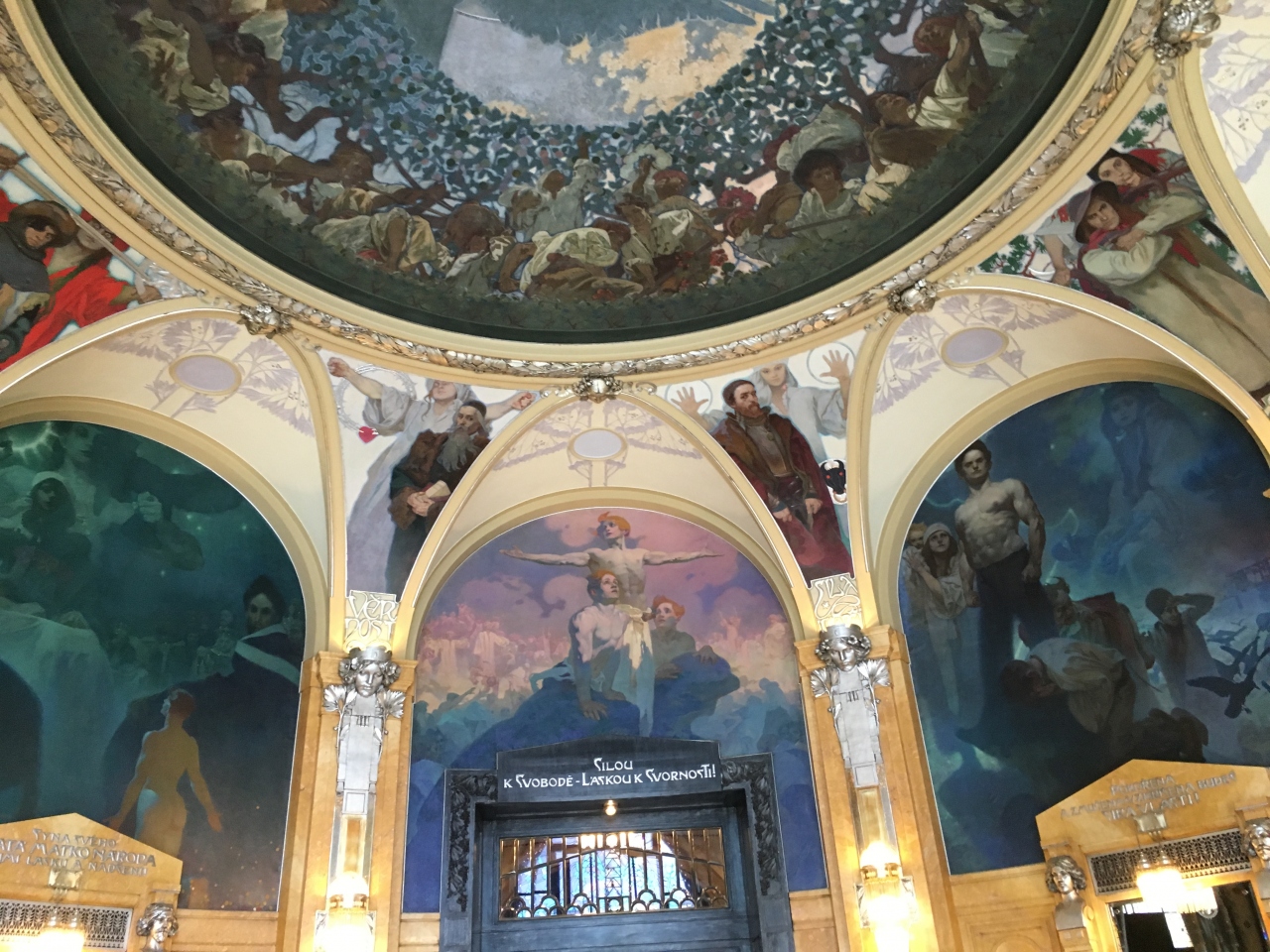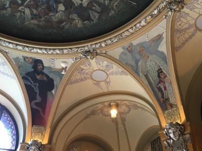 スメタナホールや、喫茶室、ミュシャが手掛けた壁画や美しいカーテン、装飾のお部屋もあって、見所満載です。1時間ほどのガイドツアーです。装飾やミュシャに興味ある方にはおススメします。- 旅行時期
