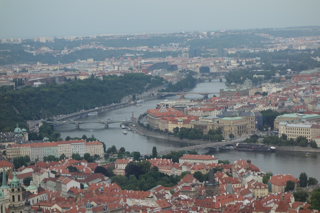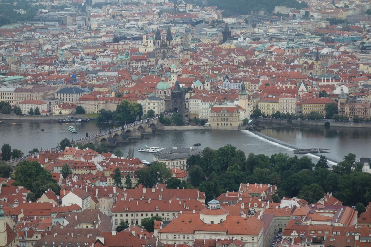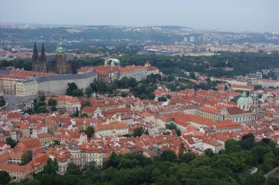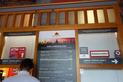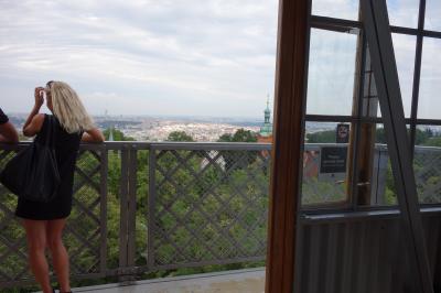プラハカードという、プラハ公共交通機関乗り放題+いろんな観光名所入場無料/割引になる観光客用カードを利用しました。120コルナの入場料が無料になりました。エレベーターは別料金ということで階段で登りました。上りと下りの階段は別です。第一、第二展望台があって、思い出に残るような景色が楽しめます。頑張って階段上ってよかったです。夏はかなり遅い時間まで営業しているようです。