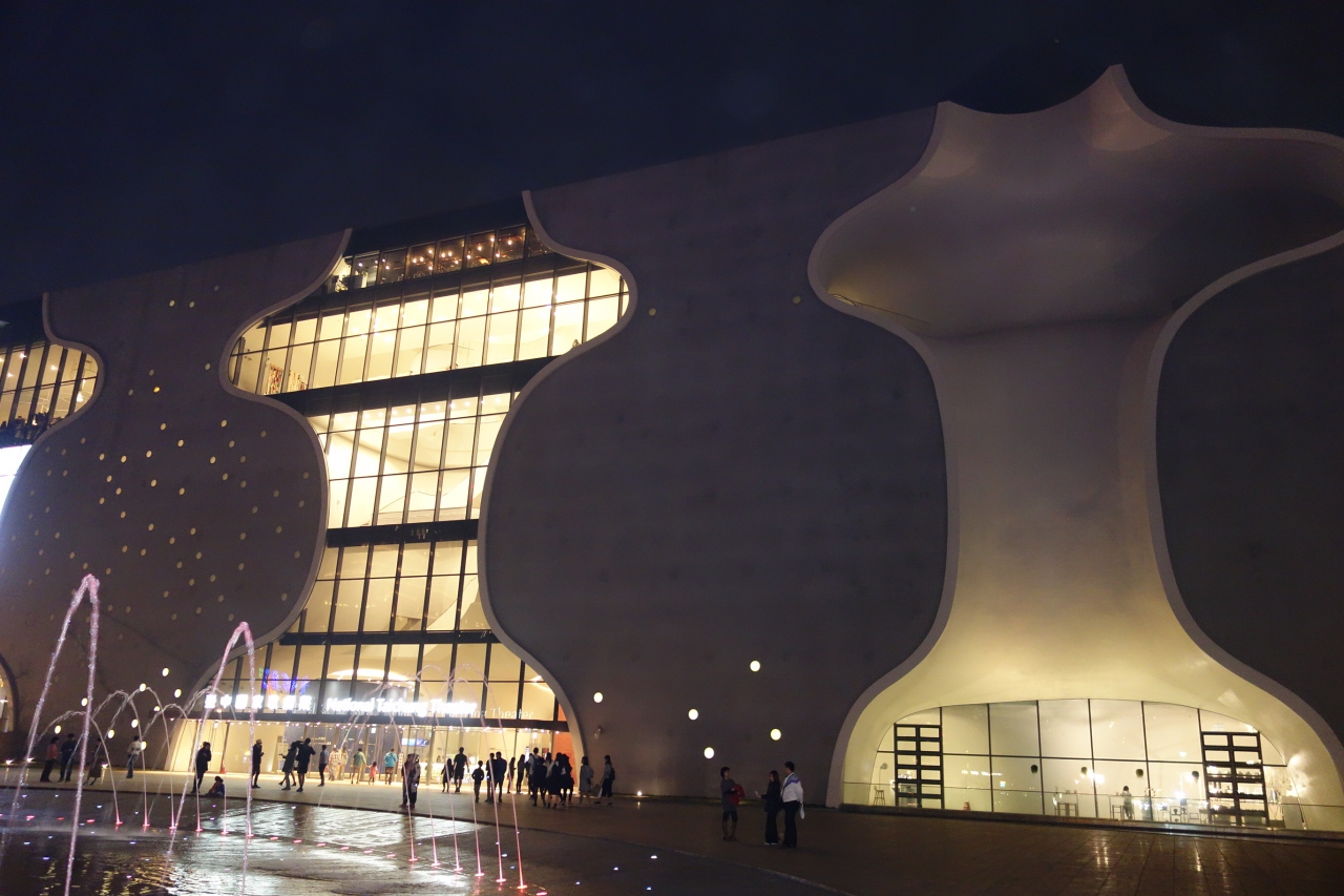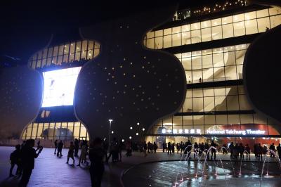 台中駅からタクシー利用して行きました。15分、225元くらい。設計は日本の著名な建築家の伊東豊雄さん。夜間に見に行くと美しいライトアップがなされ、建物広場の噴水も面白い。劇場が複数あり、空いている時間なら見学できるそうですが、今回はイベント中のため見学不可でした。1階に自作オルゴールのお店、雑貨や本、自然派化粧品のお店が並び、センスのいい店ばかり。若者たちのデートコースになっているみたい。おしゃれなカフェもありました。1階ロビーではこの建物を完成させるまでの紆余曲折をショートムービーで流していました。