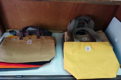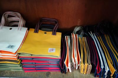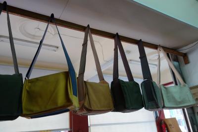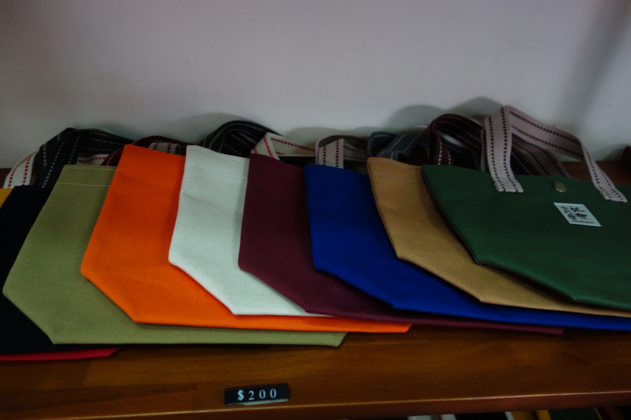 お手頃な帆布のかばんや雑貨がたくさん。色やデザインもさまざまで普段使いに便利なカバンが手に入りそう。