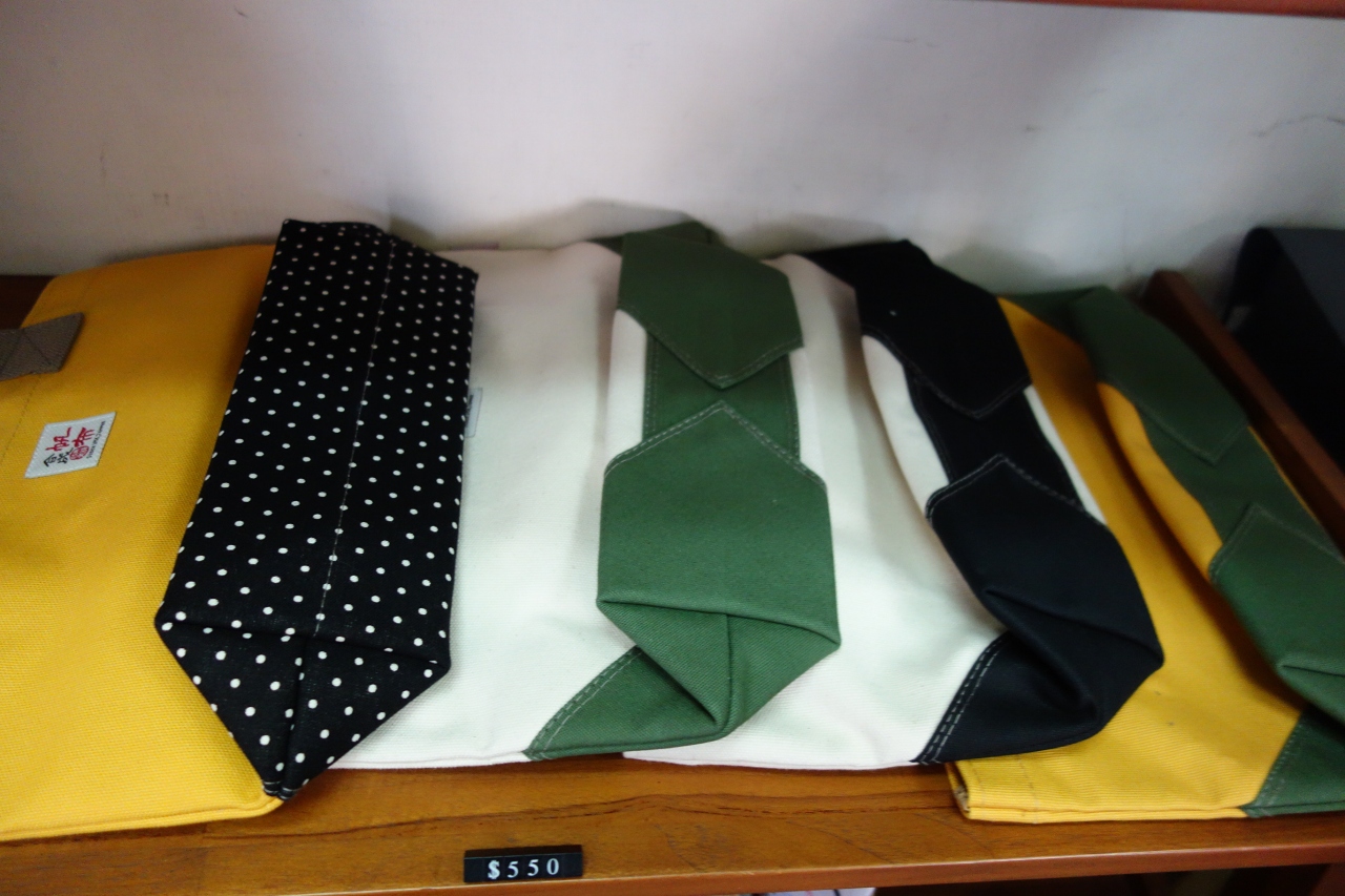 1年前もいくつか帆布バックを購入。使いやすいのでまた買いに行きました。品ぞろえは定番がずらり、色もたくさん。シンプルなカバンがたくさん並んでいます。150-600元くらいのお値段で、300-400元くらいの品が多いかな。店主のおじさんは少々日本語OK。ほかの店員さんはミシンや工具でカバン制作中。勝手に見て、品定めできるので気軽にお買い物できそうです。