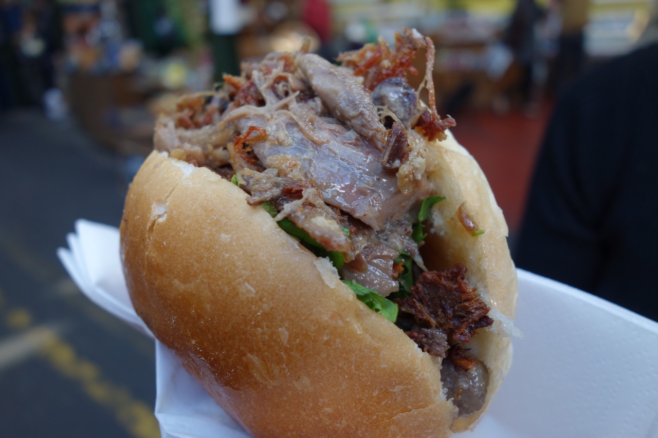 たくさんの屋台がありハンバーガーやパエリア、牡蠣などの魚介類や果物、野菜と品ぞろえが豊富!