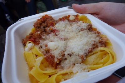 生パスタのお店もあって、朝に作っているパスタはモッチモチ!ボロネーゼは濃厚でパルメザンチーズと絡み合って何とも言えない美味しさ!パルメザンチーズは自分で入れれるのでたっぷりと入れて下さい。